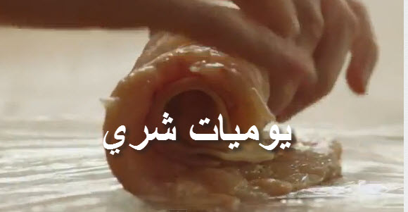 ترص قطع الدجاج علي السطح وتغطا بورق بلاستيك وتدق عليها بمطرقة الدجاج او اي النشابة وتفرد بحيث يكون سمكها 1/4بوصة