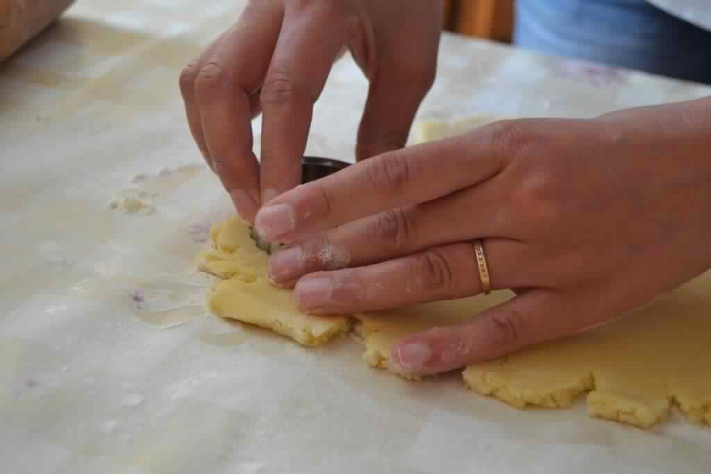 تثقب نصف الدوائر في الوسط من الأفضل ثقبها بعد وضعها في صينية الفرن
