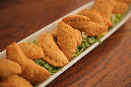 9. أخرجي السمبوسة واتركيها على ورق نشاف للتخلص من الزيت الفائض. قدميها دافئة.